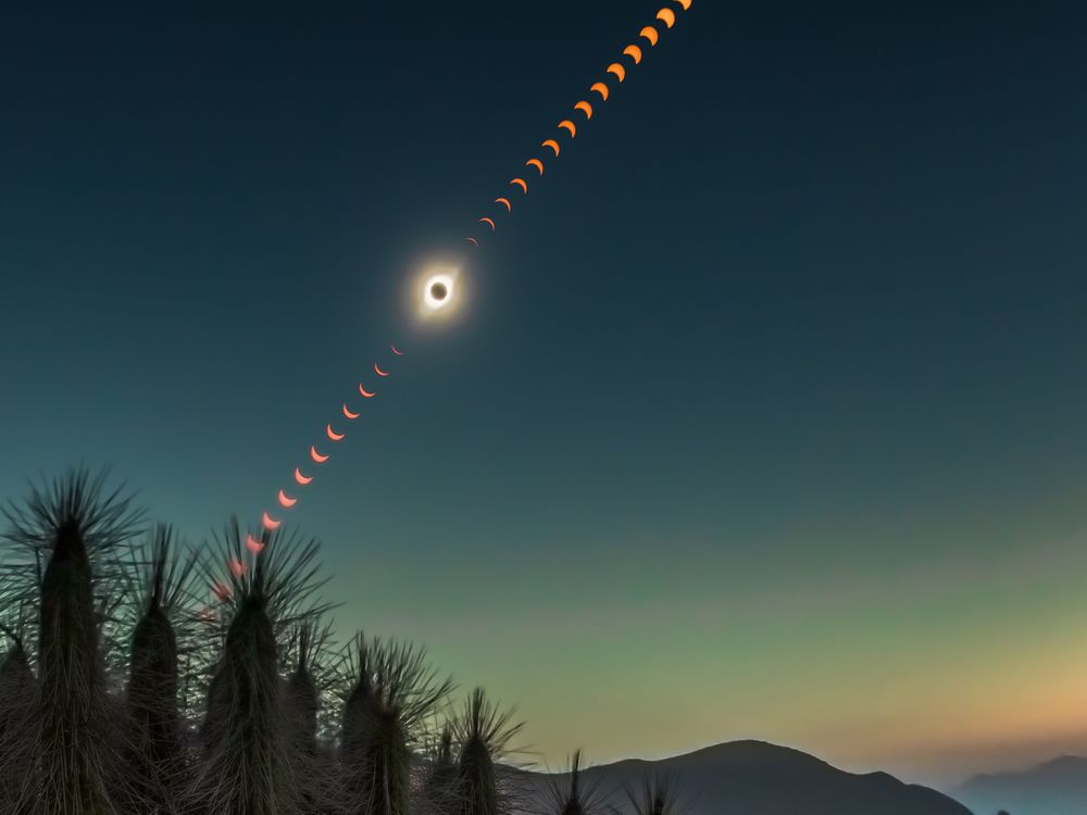 Progression of the total solar eclipse over La Serena, Chile in 2019