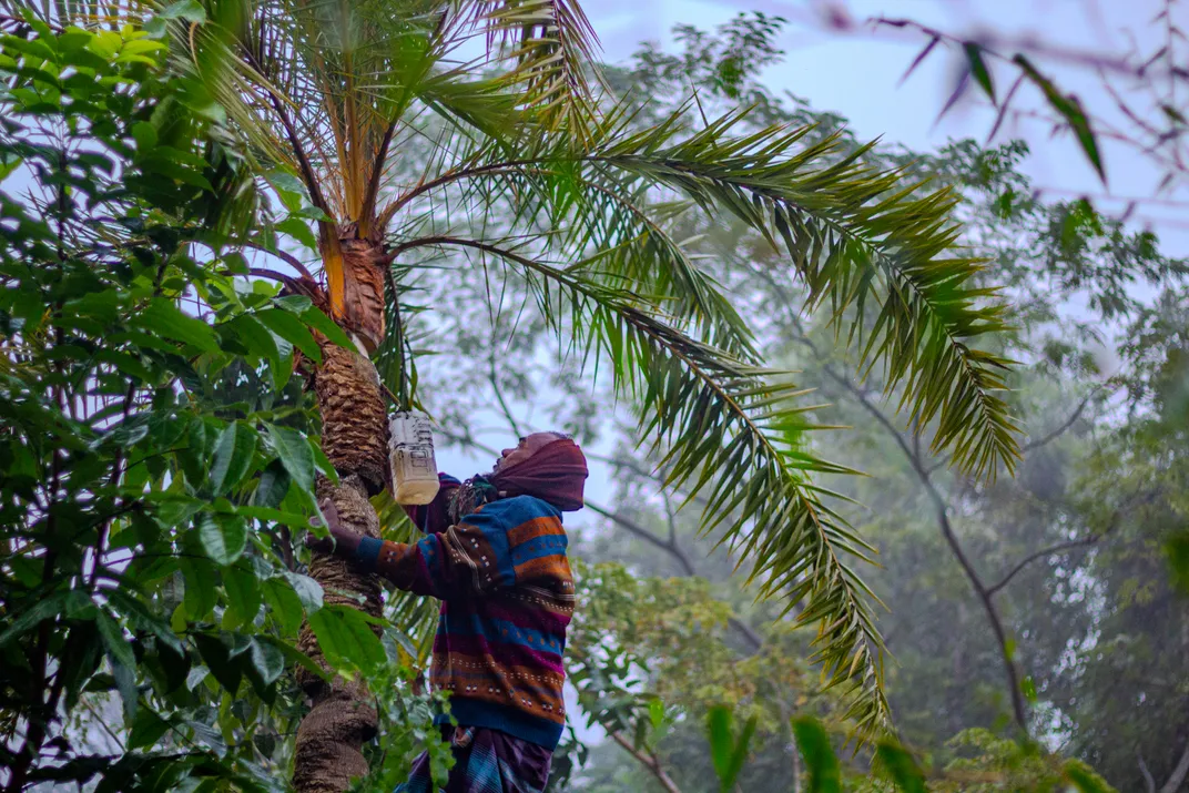 The solution to the plastic problem is almost non-existent. Plastic is being used in packaging products in such a way that it has reached even rural areas. The picture was taken in a village in Bangladesh in winter, where a harvester is using the bottom of a plastic bottle to collect date juice early in the morning. After talking to me, I learned that the top parts of the bottle are sold to hawkers and the bottom parts are used for various purposes. This environment reflects the proper use of plastic where plastic does not pollute the soil or harm aquatic life by mixing with water. The old containers go to the city and to the recycle factory through hawkers.