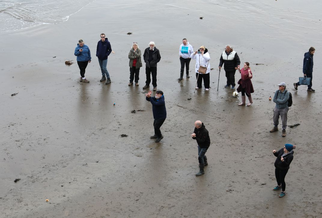 This photograph was taken in a small fishing village called Robin Hood's Bay. The group of people on the beach are taking part in an egg throwing competition to celebrate Easter.