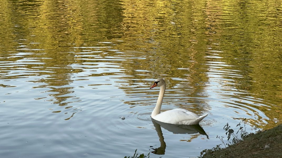 Peaceful moments. A swan gliding gracefully on the calm water, mirroring the beauty of its surroundings. Nature's tranquility. 🦢
