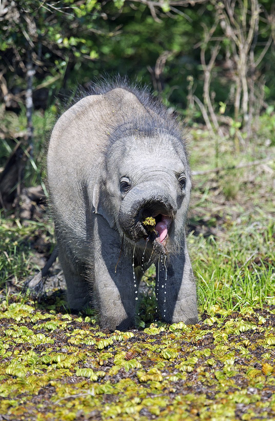 The image of elephant calf feeding in water was taken in Yala national park, Sri Lanka.