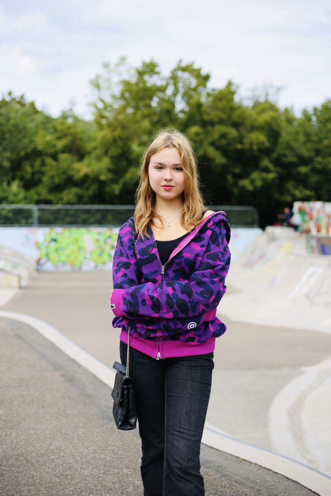 Eliza left Northern Italy at a young age, settling in this small German town where her mother found work at a local hotel. She now dreams of becoming a famous actress in Hollywood and wants to move to Los Angeles after turning 18 to pursue a career in acting. “I wanna be a star one day, I just don’t know how to do it,” she tells me. “I know I’m gonna make it though,” Eliza utters with confidence and a fierce determination. “I have to because I don’t wanna spend my life stuck [here].” Anna nods in silent agreement as we walk past an abandoned factory where older Middle Eastern men play poker and homeless families sleep in self-made encampments. The two have been best friends for several years and spent the duration of their summer exploring the city together.