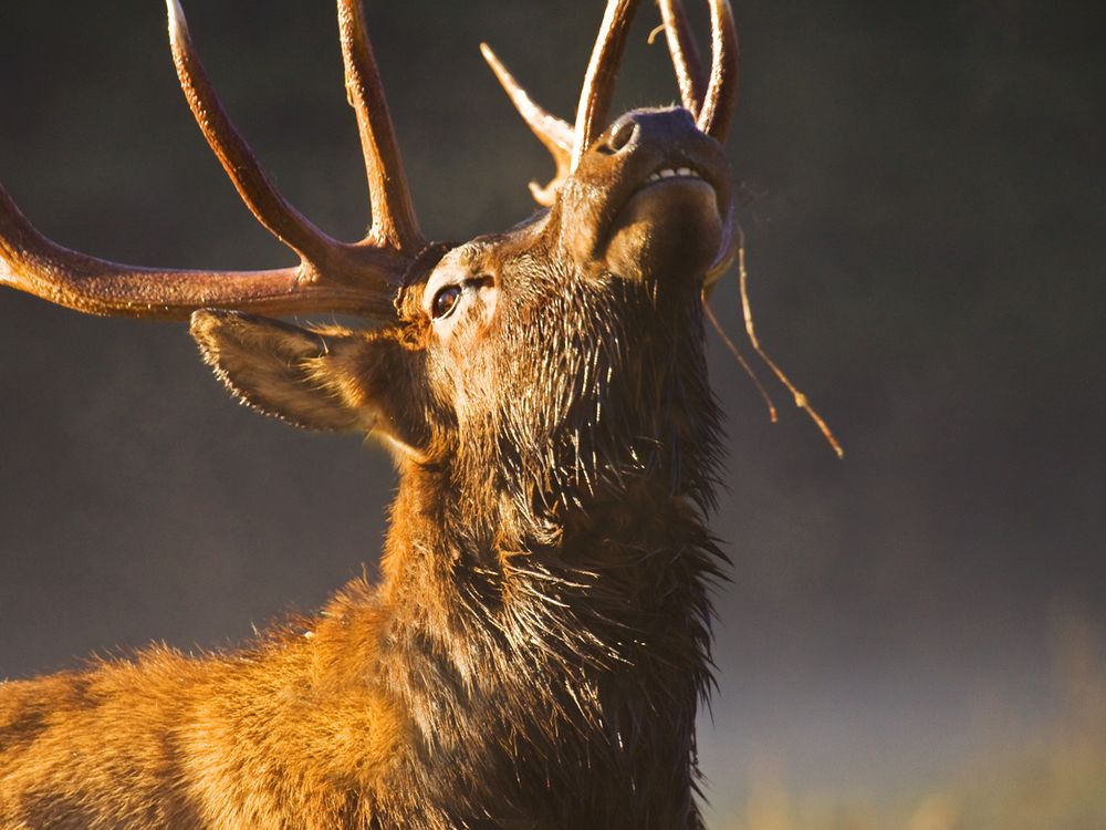 Elk bugling in the meadow just after sunrise