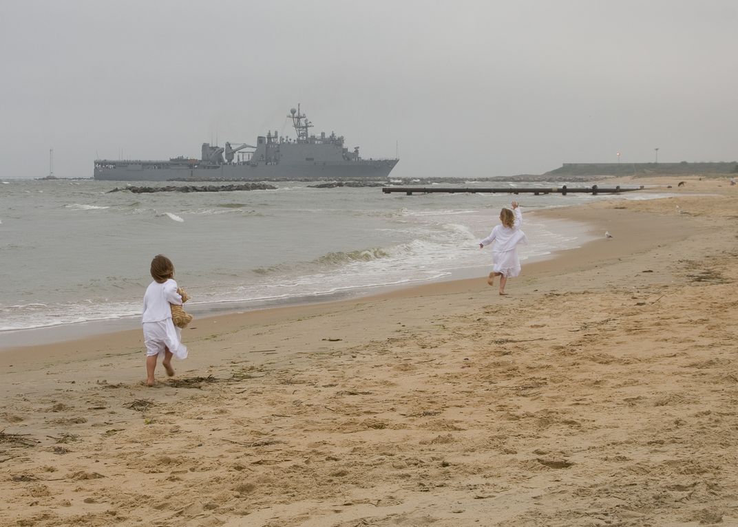 Ella and Eva run to try and meet their Daddys ship as it comes home from deployment.