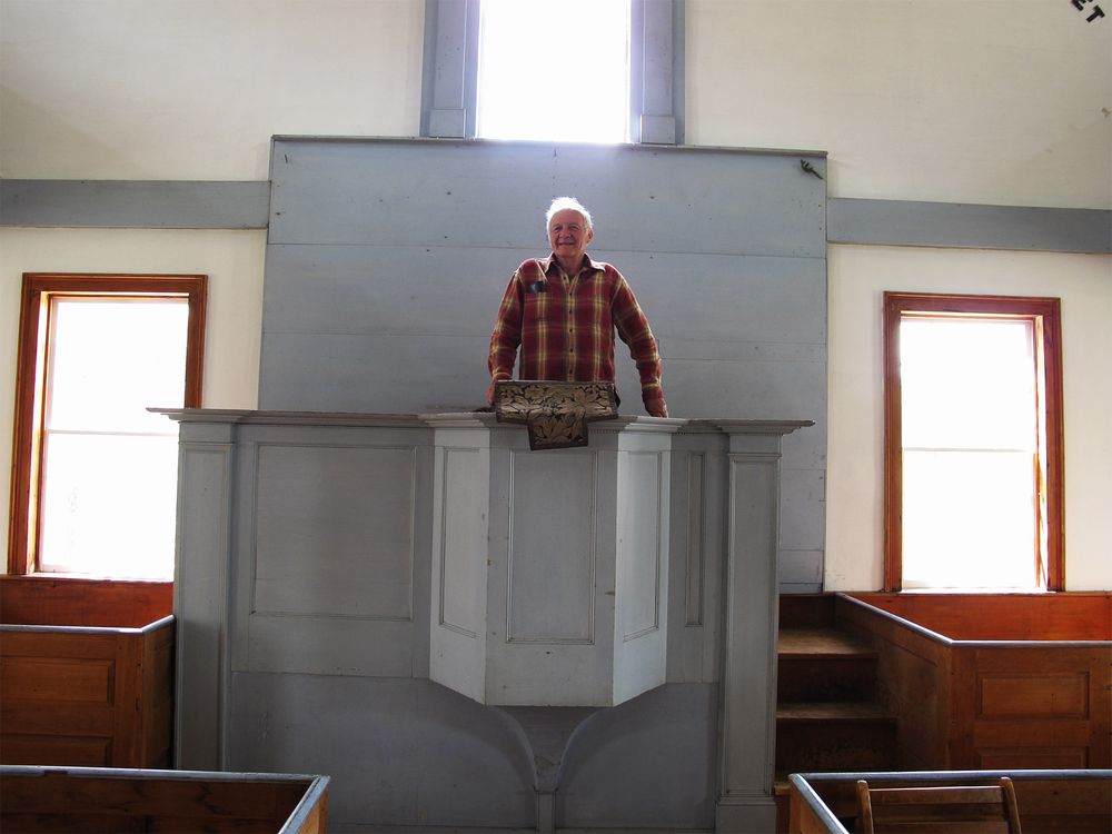 Elliott Morse, in the church that his ancestors built in Calais, Vermont, 1825.