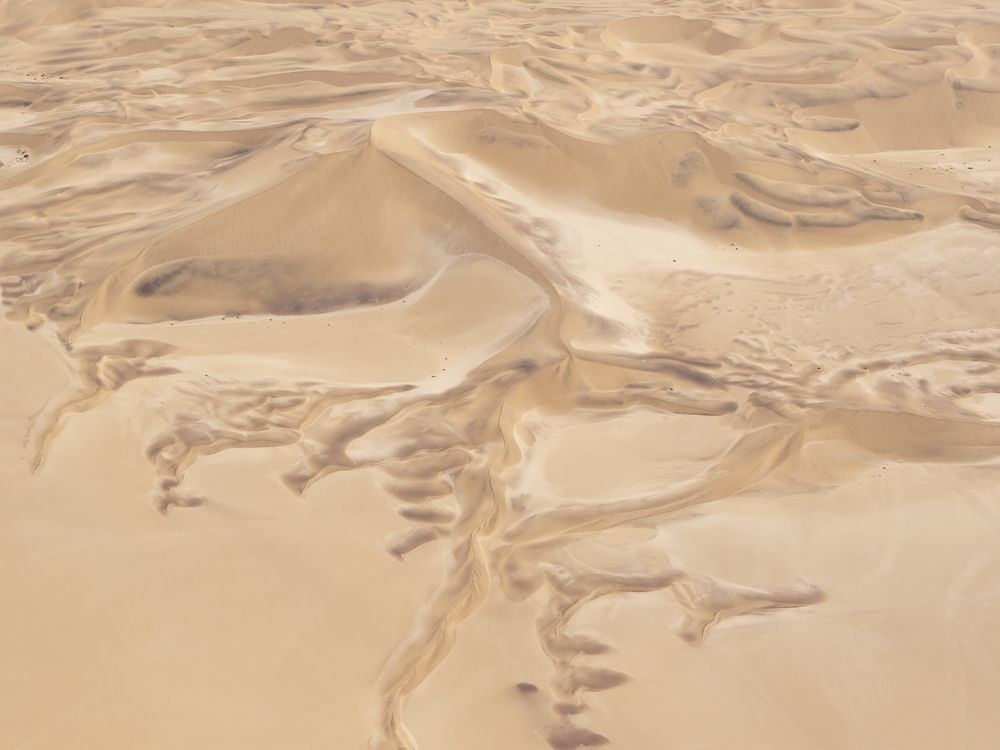 An aerial view over the area near Sossusvlei showing the extent of the massive sand dunes sculpted by the wind.