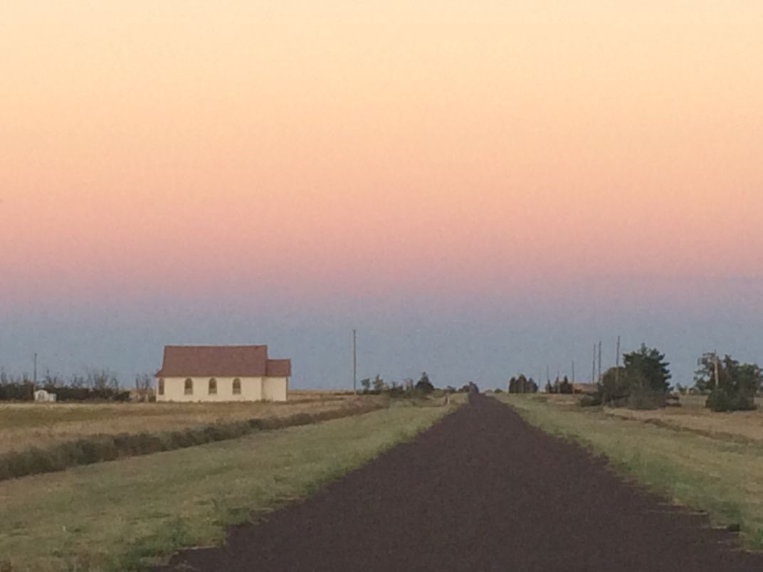 Sunset view of Mexhoma Church, standing amid the prairie that reclaimed the Dustbowl wheat fields in Cimarron County, Oklahoma (September 2015)