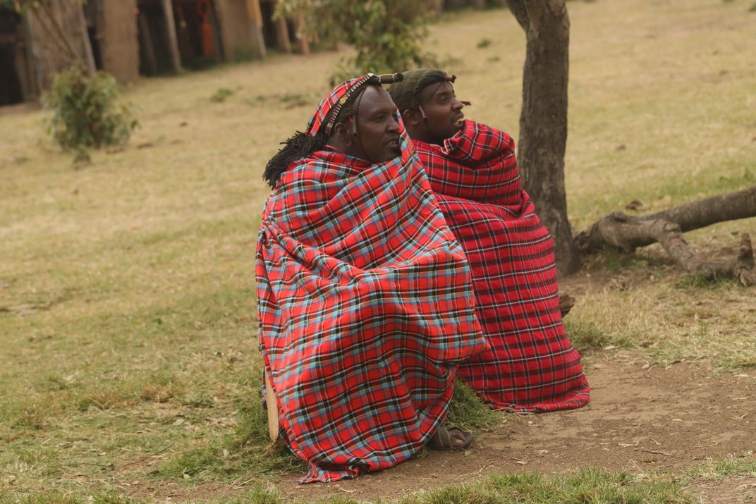 ENJOYING THE ACT Two friends sit under a tree in a Masai Village watching a dance performance of their kins at a distance.