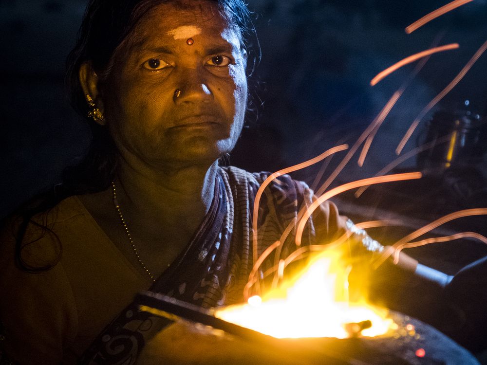 A woman corn seller at Marina beach. Her face was looking very interesting as the oven light and back side color of the environment was full of contrast.