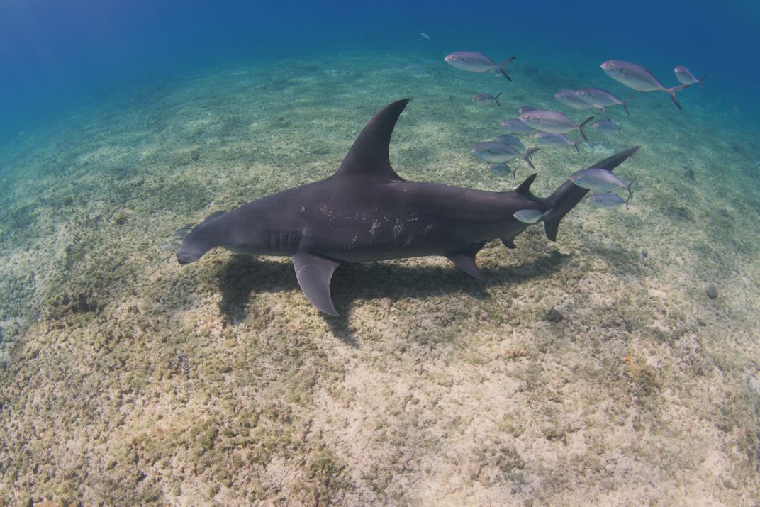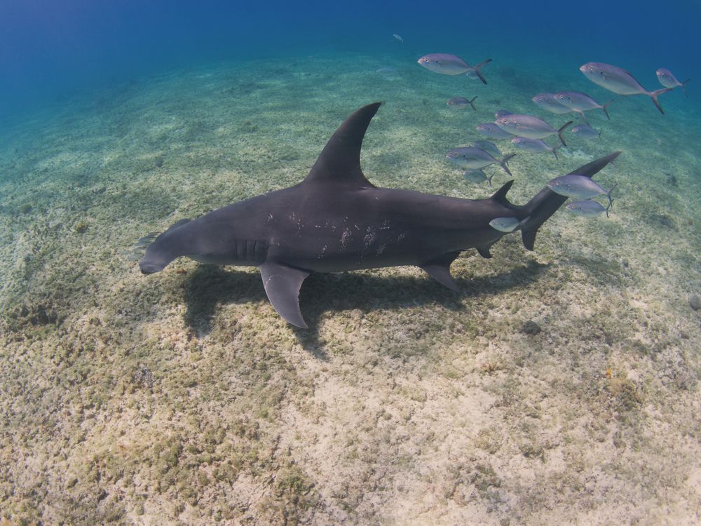Images of great hammerheads (Sphyrna mokarran) are fairly common, however an image of a great hammerhead with mating scars is almost unheard of with virtually nothing documented before now. This rare treat shows a large female, approximately 4 meters/12ft in total length, covered in mating scars which experts believe are around 4 weeks old. Great hammerheads hold their reproductive secrets close, however with scientists in Bimini studying these sharks I’m hoping we’ll soon have some answers that will lead us to piece together these endangered sharks' top secrets.