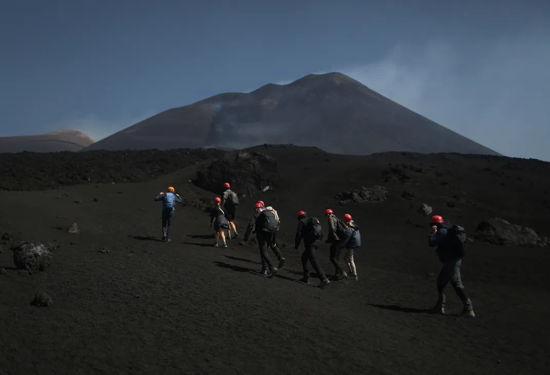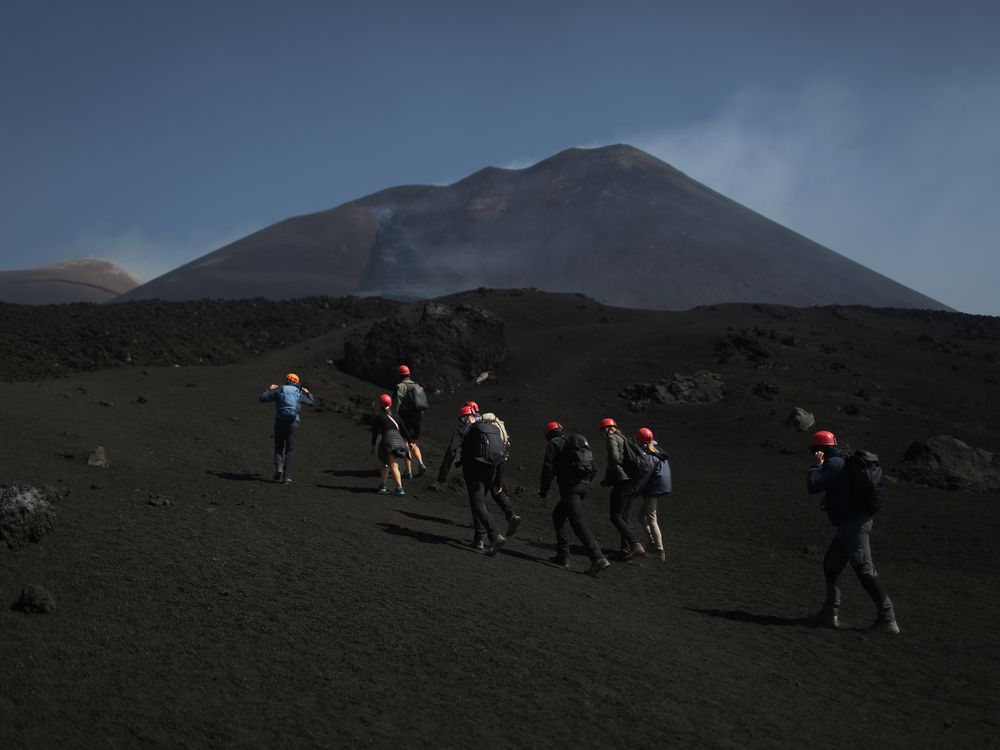Mount Etna, 2025. Above 3000 meters, during eruptive activity. Part of ''ERUPTION'' a photographic account of the unprecedented tourist frenzy that stormed Mount Etna - Europe's tallest active volcano - during its latest eruption. To see one of Nature's most primordial and powerful expressions swarmed by people - including children - at the hight of mighty volcanic activity was at once disturbing and moving. It showed both the human illusion to own nature as well as the human longing to get in intimate contact with it. It showed also Nature's majestic indifference to the human fate and its ability to feed us a deeper understanding of our lives on Earth.