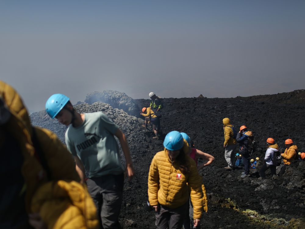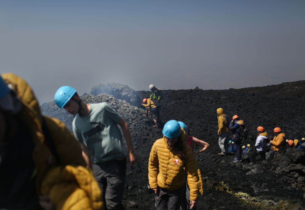 Mount Etna, 2025. Above 3000 meters, during eruptive activity. Part of ''ERUPTION'' a photographic account of the unprecedented tourist frenzy that stormed Mount Etna - Europe's tallest active volcano - during its latest eruption. To see one of Nature's most primordial and powerful expressions swarmed by people - including children - at the hight of mighty volcanic activity was at once disturbing and moving. It showed both the human illusion to own nature as well as the human longing to get in intimate contact with it. It showed also Nature's majestic indifference to the human fate and its ability to feed us a deeper understanding of our lives on Earth.