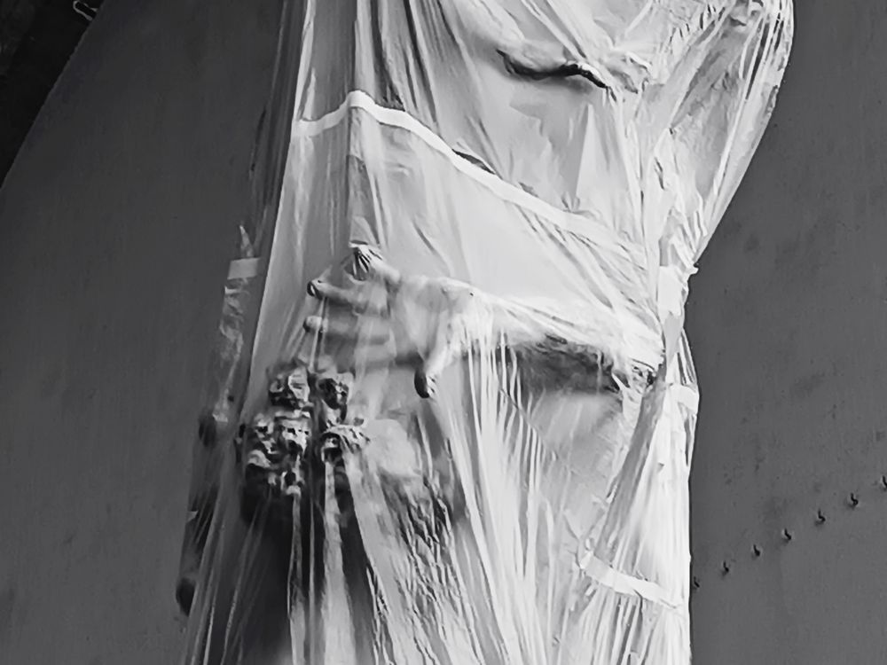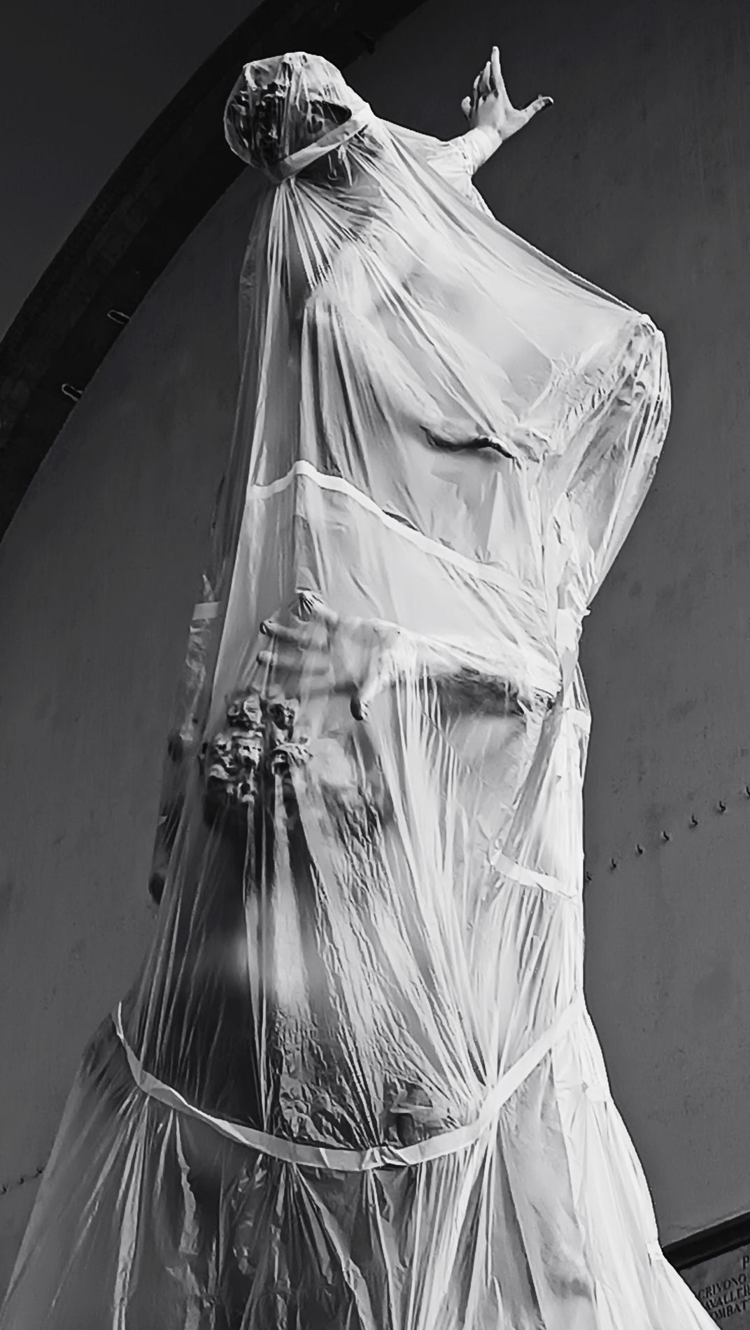 Estatua cubierta de plástico