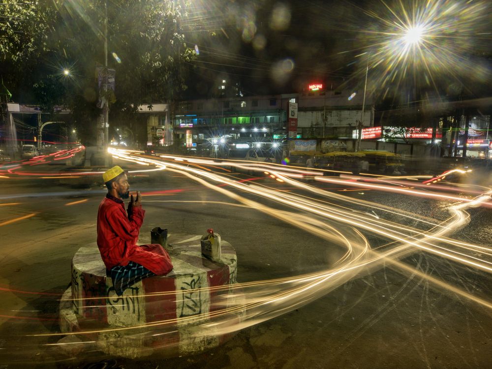 Abdul Alim(46) works as a day laborer. But he has no place to live in the city. If he rents a house in the city, then he would not be able to send money in his village home. So he passes his night on the road divider. He hopes for coming new light which would clear up the darkness of his life. Oneday life would be protected from the poverty. In the hope of those better days, he prays every day. The photo was taken from Laldighi area of Chattogram on October 30, 2018.