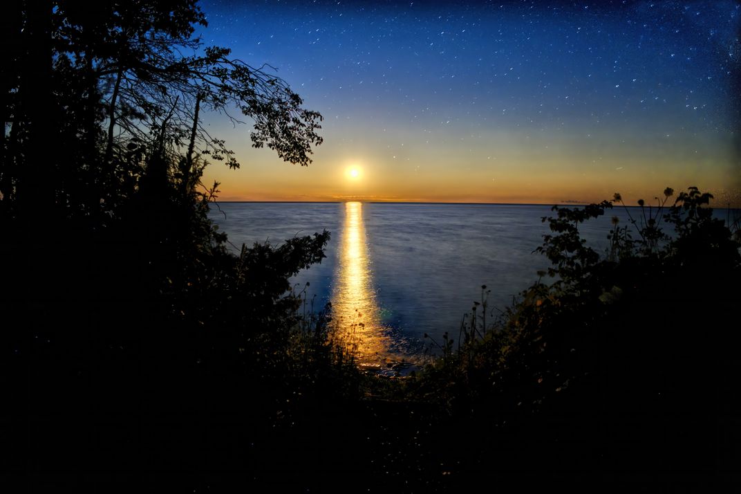 Moonrise on Lake Michigan at Bailey's Harbor Wisconsin