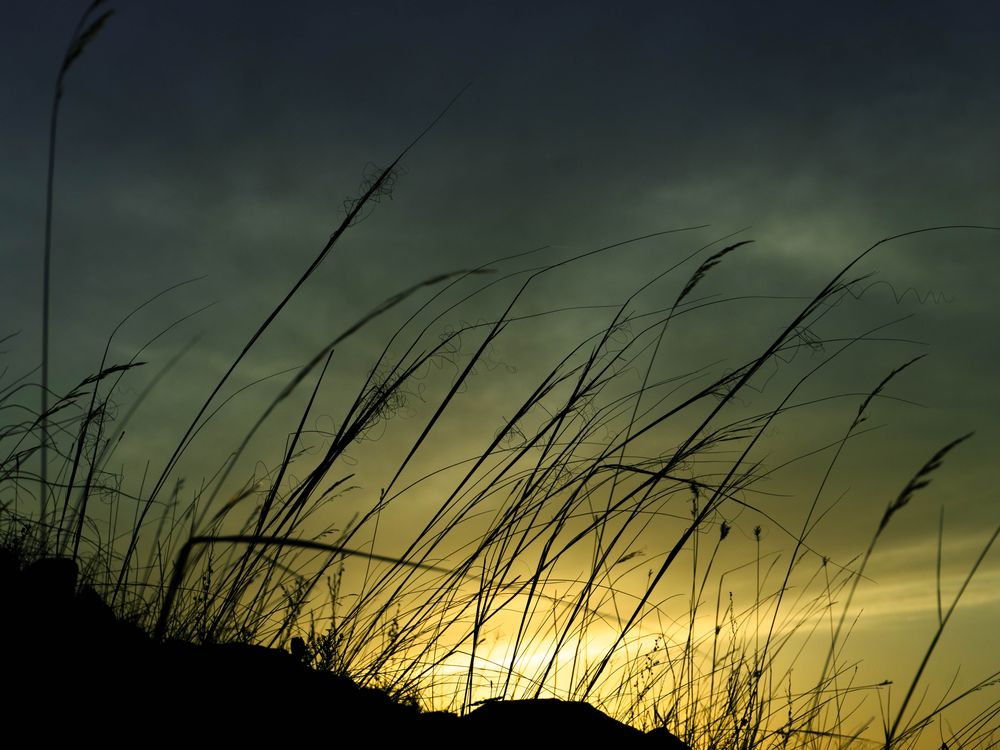 The wild grass swayed endlessly in the evening breeze, and the last rays of the sunset fell on it, casting its silhouette.