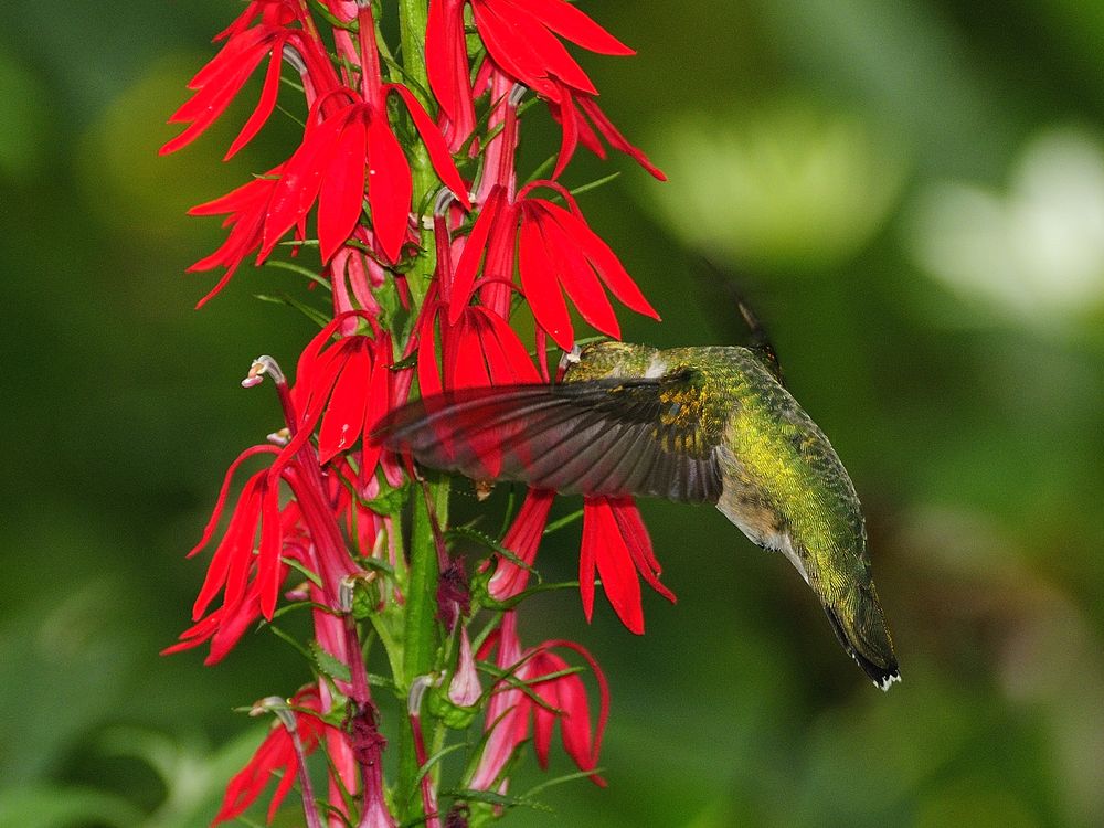 Every August when my cardinal flowers bloom, I follow the hummingbirds around as they feed on them. I liked this photograph because it's shows the cardinal flower right through the transparent wings of the bird.