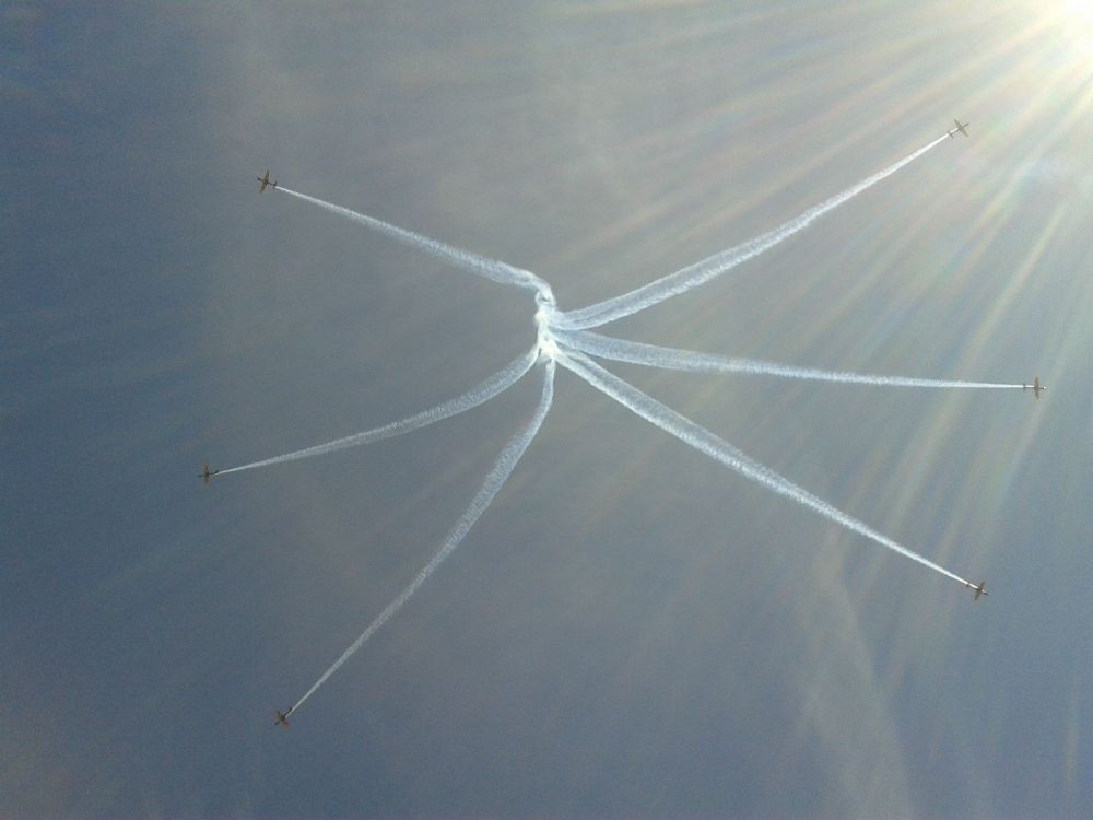 Brazilian group of aviators doing performance in the sky in the city of Pirassununga.