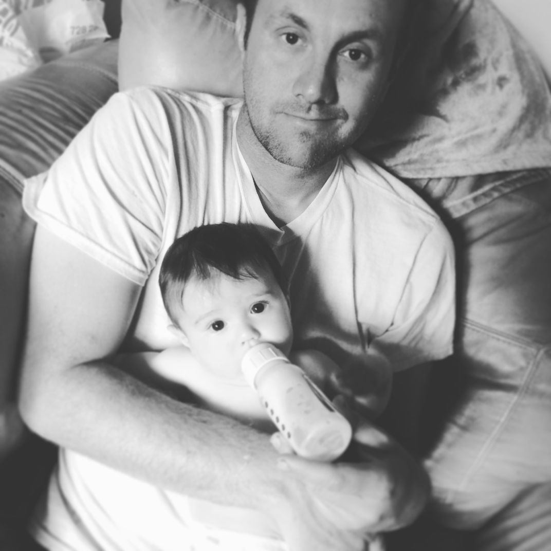 Tullon Woodruff (5) months, and his father Joshua Woodruff, at home in southern Ohio. August 2016.