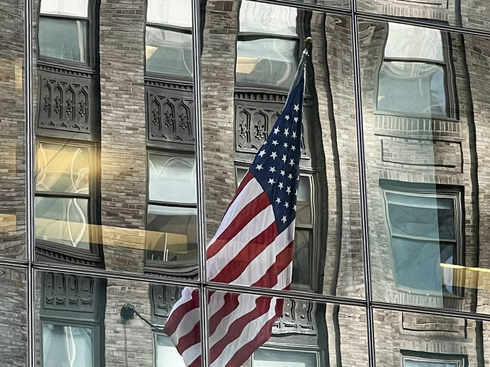 I love tall buildings, reflections, and illusions. On a visit to NYC in the fall, I became mesmerized by this American flag's reflection from a neighboring building - the metaphor of it.