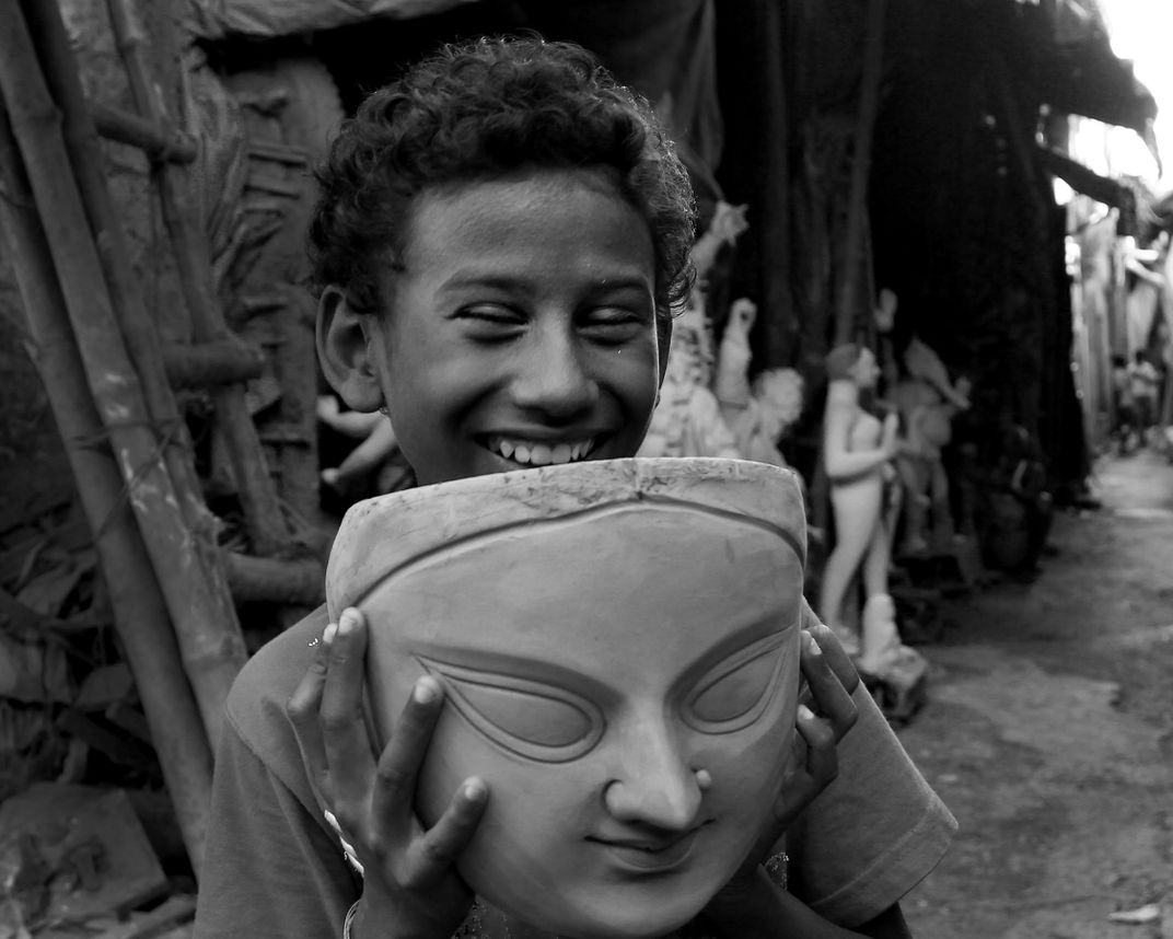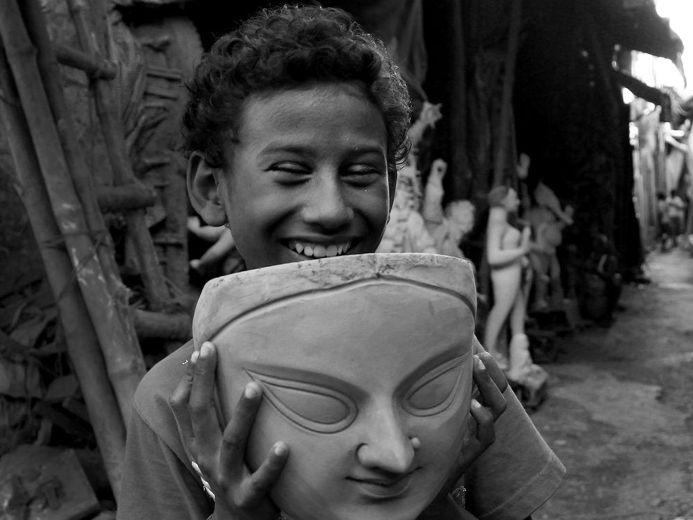 Young boy with an idol of GODDESS Durga. The meaning of the photo is that the GOD is inside us. Respect people this is the way to get the GOD.