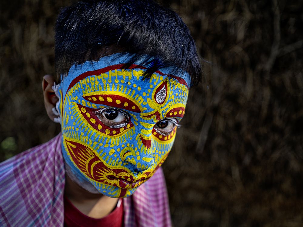 I took this photo in Bardhaman District of West Bengal where the Gajan Festival is celebrated with great zeal and enthusiasm. Face painting holds immense cultural and religious significance during the Gajan Festival, a vibrant Hindu folk celebration observed in West Bengal. This festival, marked by fervent devotion and colorful rituals, involves devotees painting their faces to resemble Hindu deities and mythological characters. Through this artistic expression, participants immerse themselves in the spiritual essence of the festival and pay homage to the divine.
