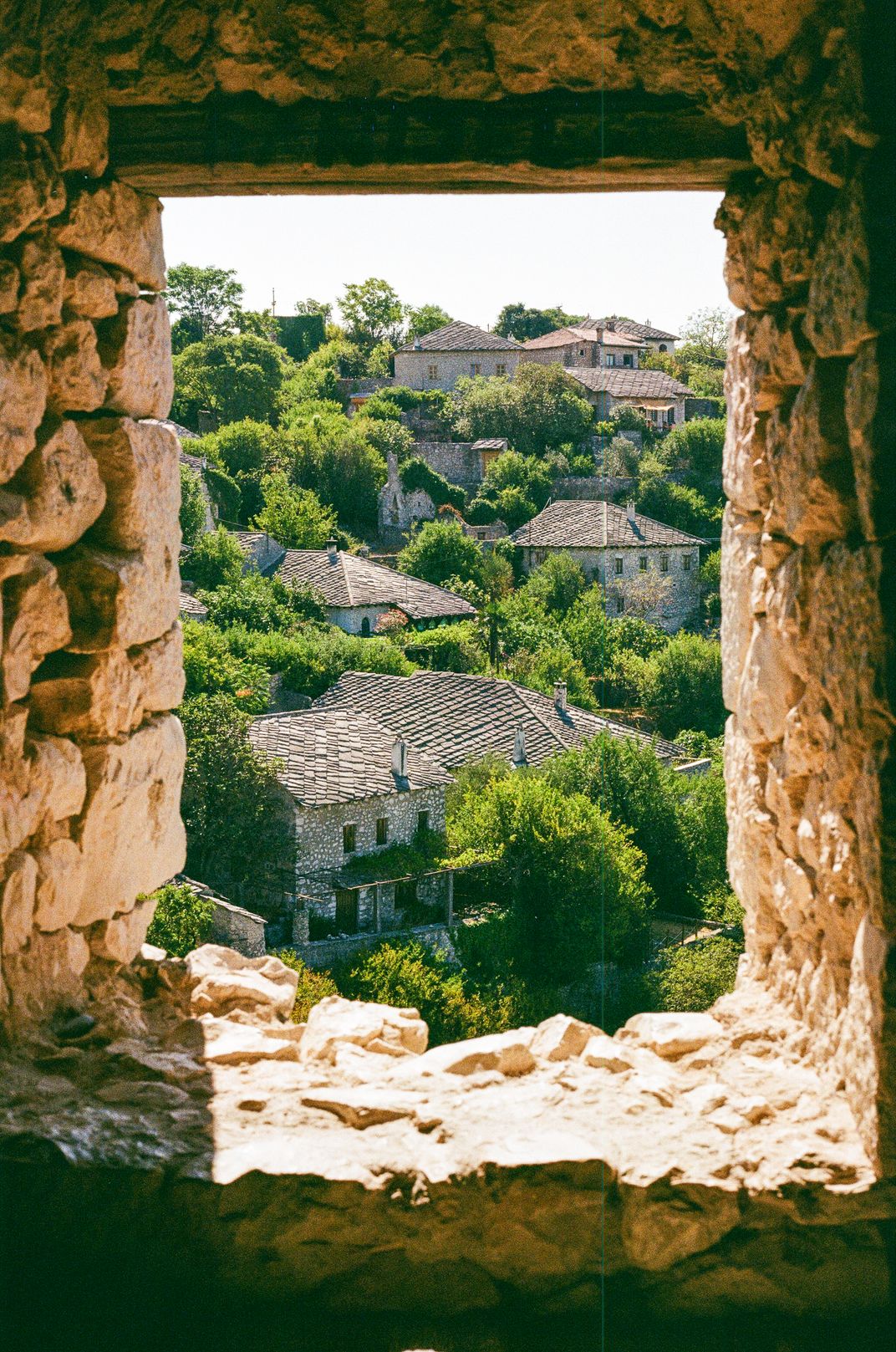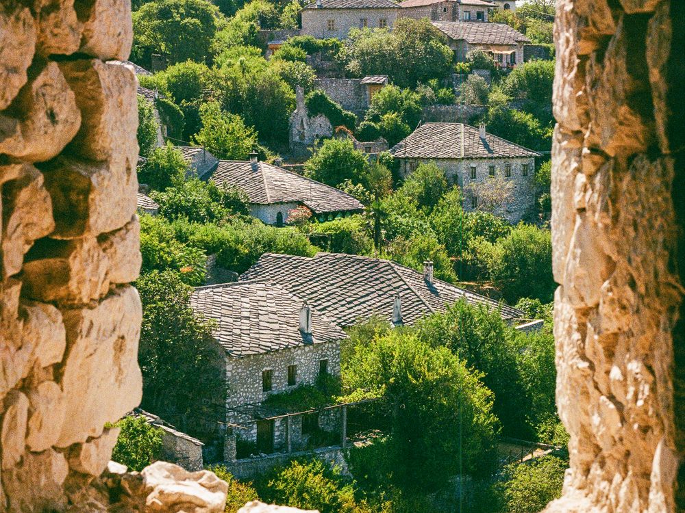 A look through a historic Ottoman empire castle into the surrounding town.