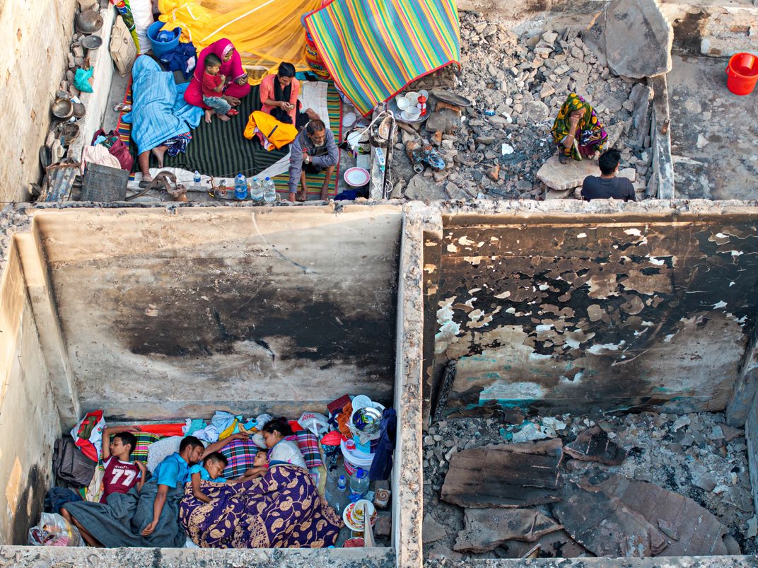 After the fire in Korail,Dhaka several families find solace in the midst of devastation. Huddled together on makeshift bedding, their bond remains unbroken, a testament to their resilience and strength as they navigate through the destruction.