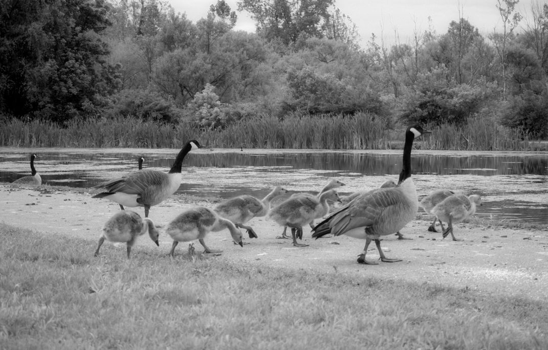 Group of ducks heading back to their pond.