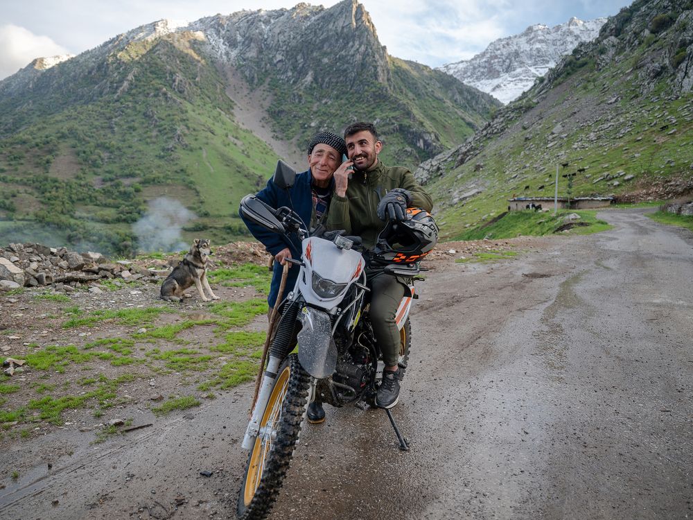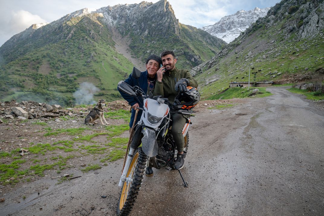 Wahed and his friend Hawmand check in with family down in the valley. In Dargala, tucked deep in the Zagros Mountains, service can be spotty—but these small threads of connection still find their way through.
