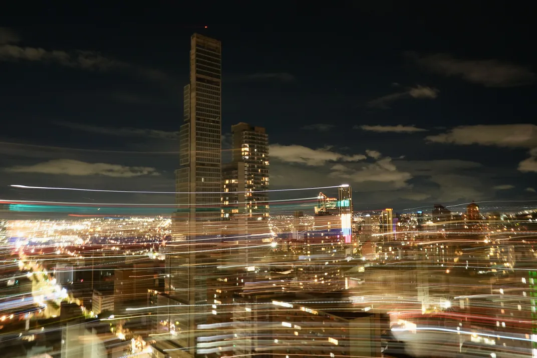 A long-exposure photograph capturing Bogotá’s night lights from the 33rd floor of Torre Ventto, in the emblematic La Candelaria district — a luminous farewell before leaving for my master’s studies in Paris.