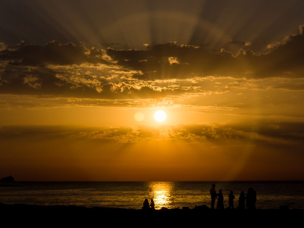 on the Favignana Island in the Egadi archipelago off the west coast of Sicily, the best spot to watch sunset is buzzing with travellers every day end, enjoying the mesmerising view of the eternal cycle and the local lifestyle (a suitably placed wine bar adds to the experience) .. the full halo and second sun gave this picture a little science fiction kick.