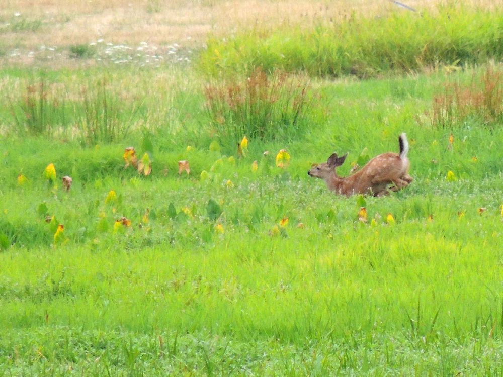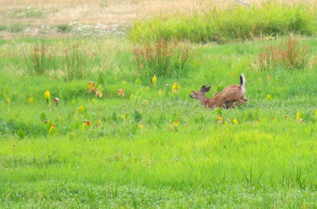 Was watching as doe and fawn walking at Ridgefield National Wildlife Refuge. The fawn realized it was left behind and rushed to catch up.