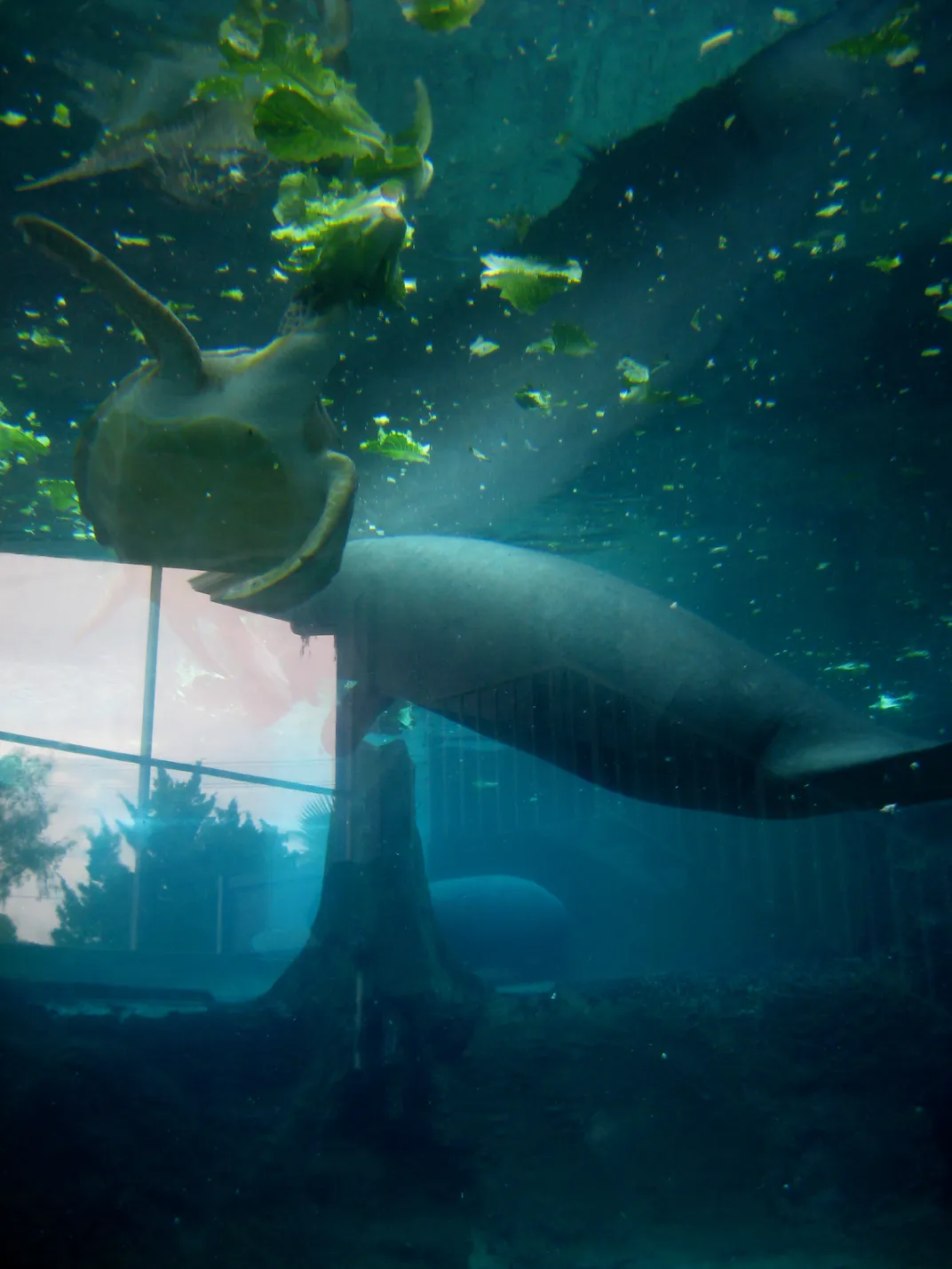 Feeding time for turtle and manatee at Mote Marine Aquarium