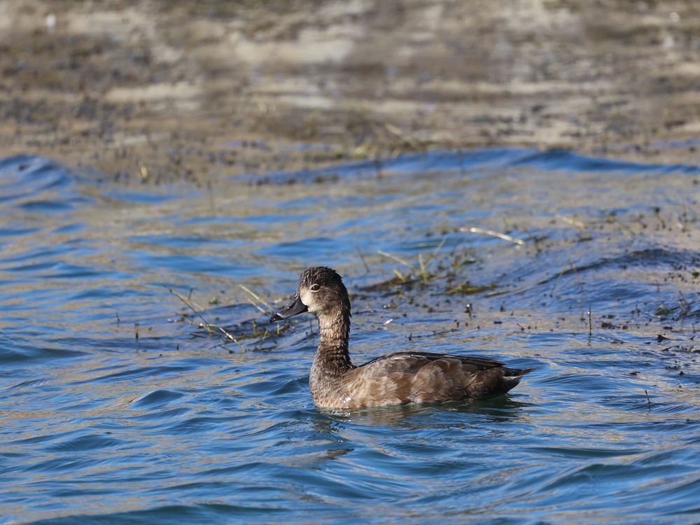 A female Ring-necked Duck in Lake Michigan alongside the pier.
