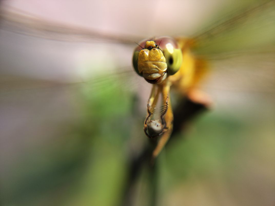 Oversized Anime eyes and a razor grin! I have to admit, the first time I saw my close-up photo, I couldn't believe that a dragonfly could pull such a face! Location - at a neighbourhood park. Perched on a twig. A most wonderfull model! The female of the species is yellow.
