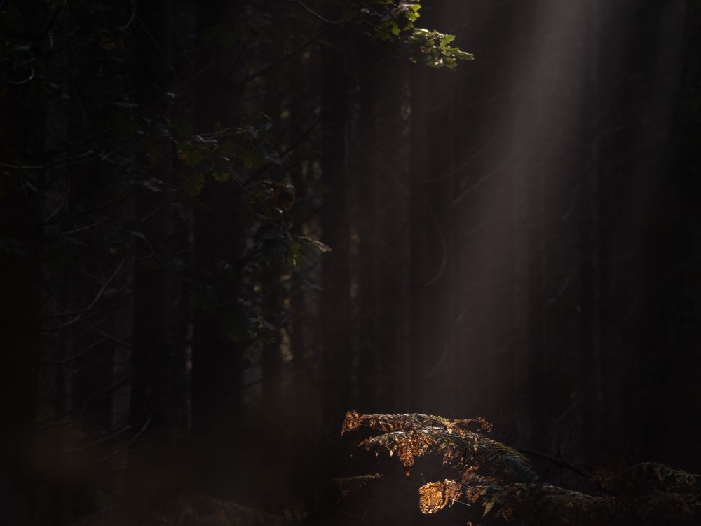 Morning walk in a magical atmosphere with rays of sunshine piercing through the mist