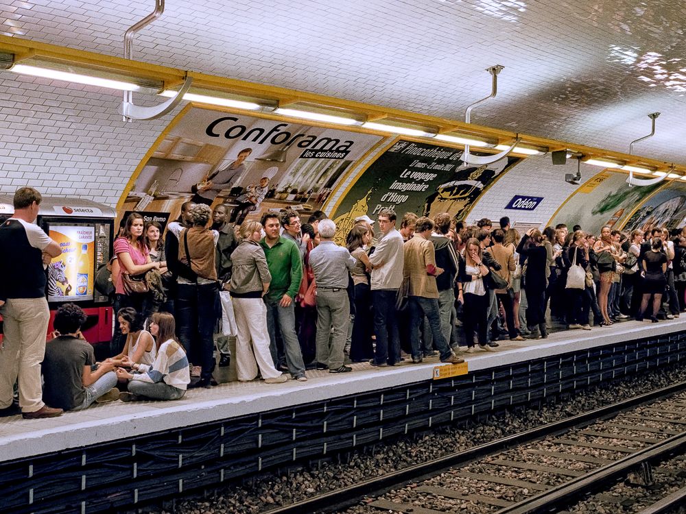 Packed Metro in Paris as revelers travel to different stations and venues to enjoy and participate in France's country-wide festival of music. Frame 2