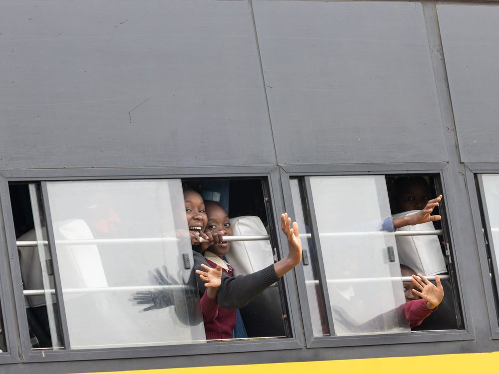 A school bus on a field trip to Kenya's Lake Nakuru passed close by with many children showing joy upon arriving at this incredible wildlife haven.