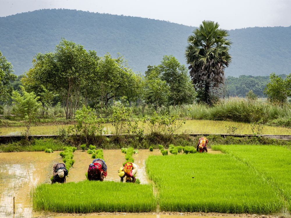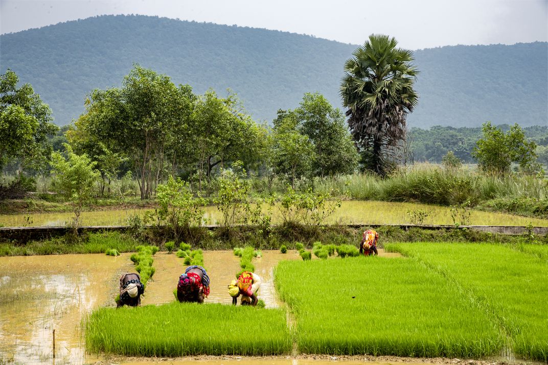 Women farmers bend over lush paddy fields, tending to their daily work against Jharkhand’s serene hills. I captured this moment while traveling through the area, witnessing the harmony of nature, resilience, and rural life.