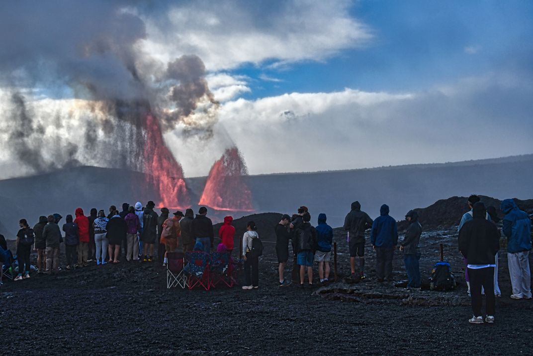 This photograph captures the breathtaking eruption of Kīlauea Volcano during Episode 36, taken on November 9, 2025, inside Halemaʻumaʻu Crater at Hawaiʻi Volcanoes National Park. Two powerful lava fountains dominate the scene — the north vent reaching nearly 750 feet (230 m) and the south vent soaring up to 1,200 feet (360 m). The molten glow lights up the volcanic plume, painting the sky in deep orange and crimson hues as rivers of lava spread across nearly 80 % of the crater floor. The image conveys both the raw energy and surreal beauty of Hawaiʻi’s living volcano — a reminder of the island’s ever-changing landscape shaped by fire, earth, and time.