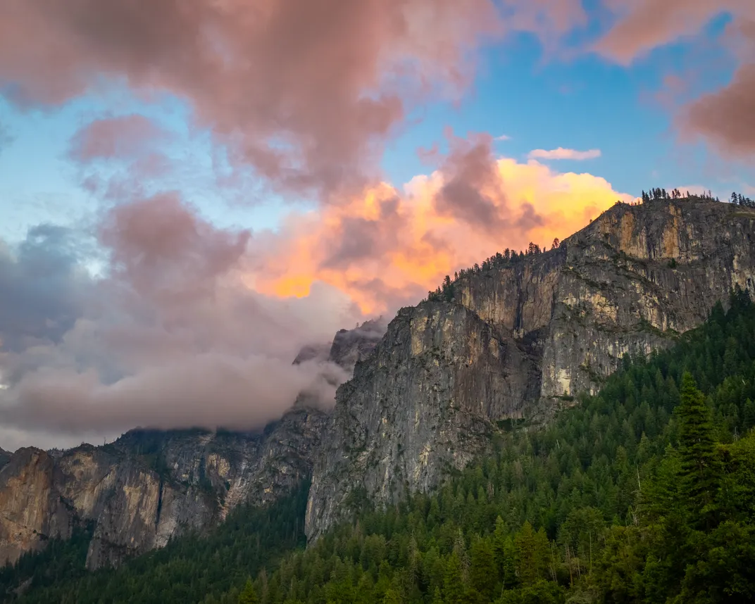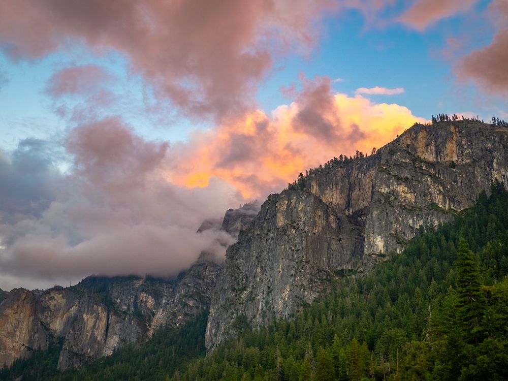 I was photographing Tunnel View in Yosemite National Park. Sunset was starting to take over the clouds. I looked to my right and the sunset made the clouds over the mountain range look as if they were on fire. Another example of not getting caught up with tunnel vision and look around you!