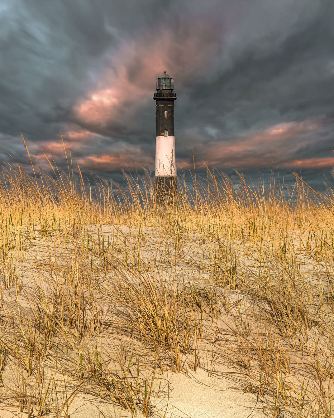 Stormy skies over the Fire Island National Seashore Lighthouse on Long Island New York.