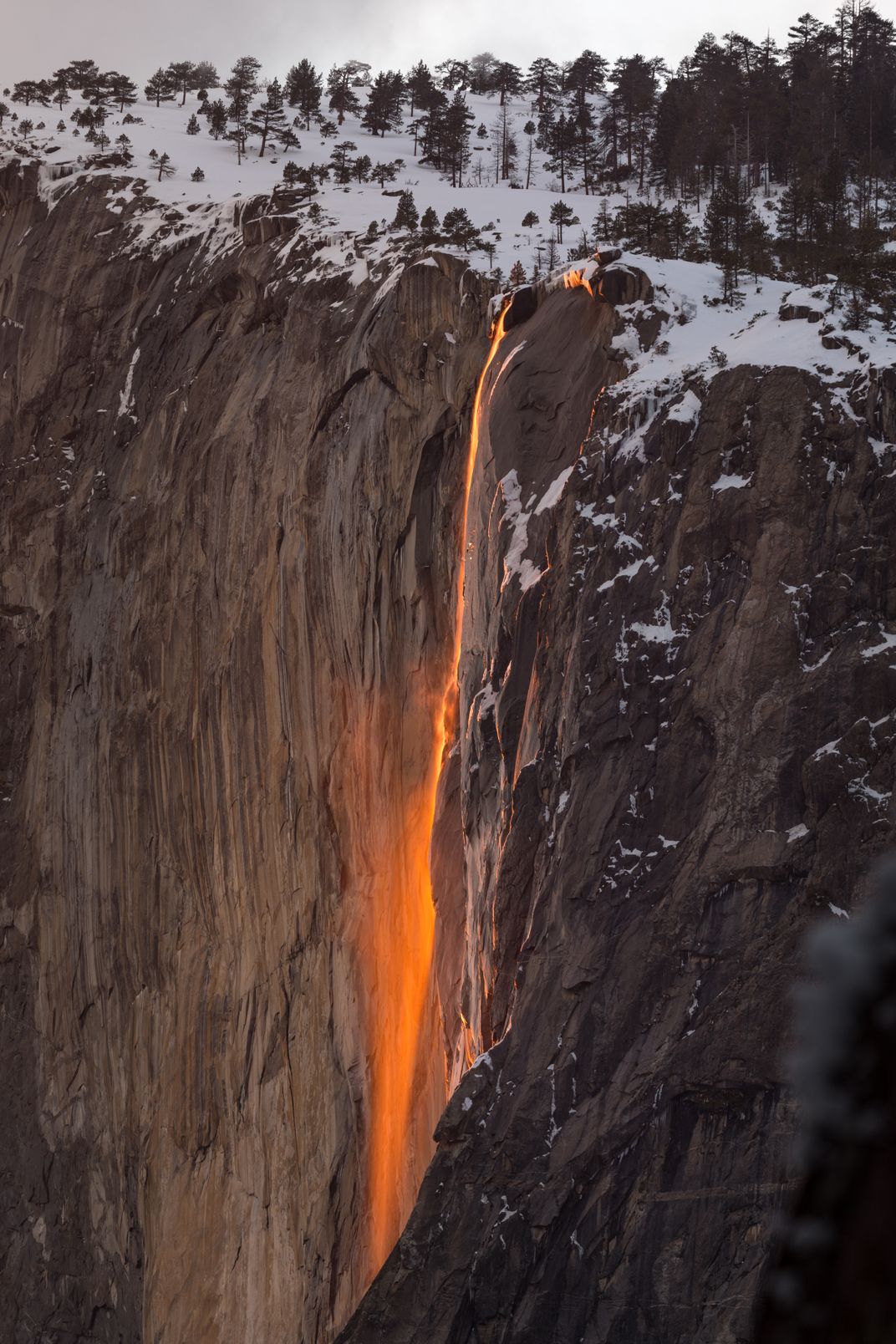 Firefall!! The 4 year wait is over! Yosemite is undeniably picturesque and portrays grandeur. But this mesmerizing waterfall that looks like lava makes it phenomenal. Every year for few days in February the sun’s alignment lights up the Horsetail Falls in a unique way. Drove for hours, hiked few miles through snow and ice and struggled to find the right spot among hundreds of enthusiasts just to witness this spectacle for 10 minutes. It was all worth it
