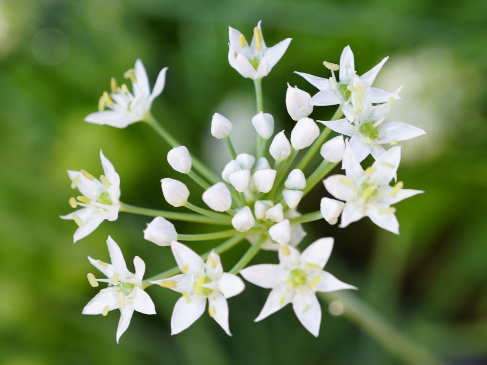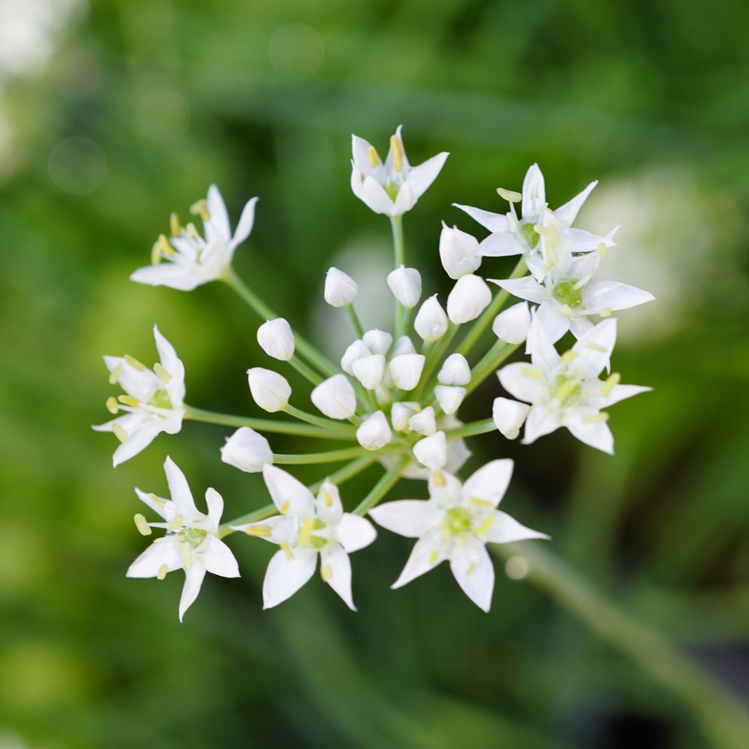blooming flowers of plant chives in the garden under the sub shine in the early morning