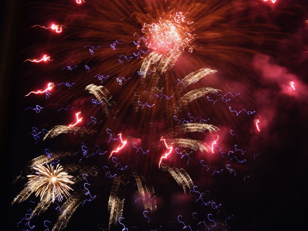 Fireworks at a summer fair in a small town celebrating the end of the season.
