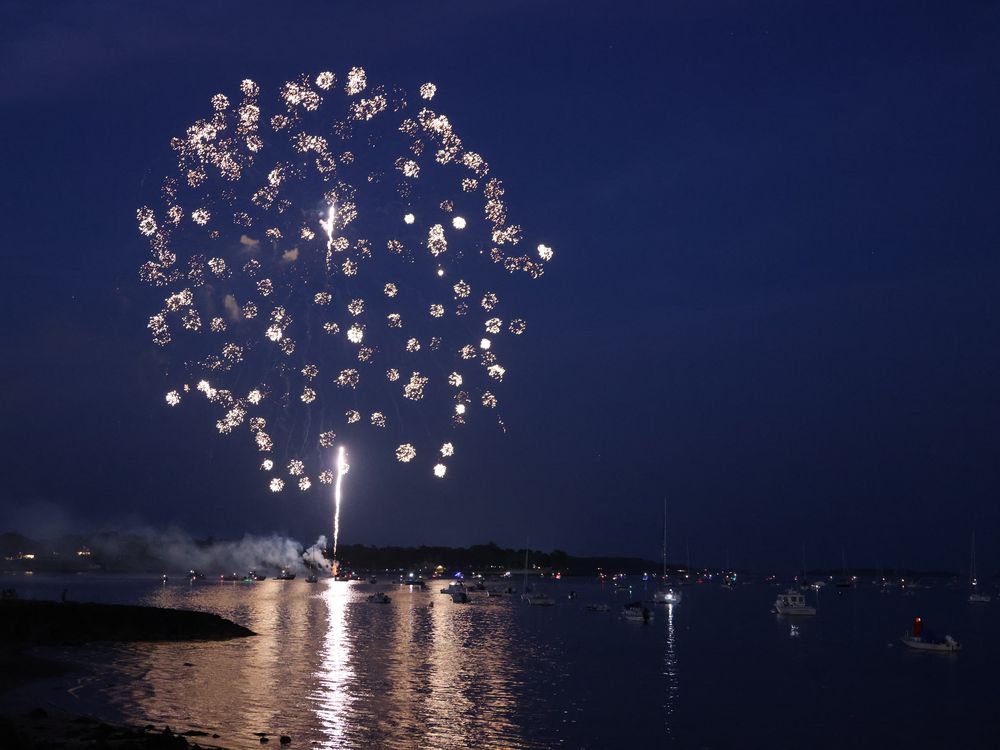 “Stars Over the Harbor” On a summer evening in Massachusetts, families gathered by the shoreline and on boats to watch the Fourth of July fireworks. This photograph captures the moment a firework blossomed into dozens of star-like bursts above the harbor, reflected in the water below. For many communities across America, celebrations like this embody both tradition and togetherness — the simple joy of people coming together under a shared sky.