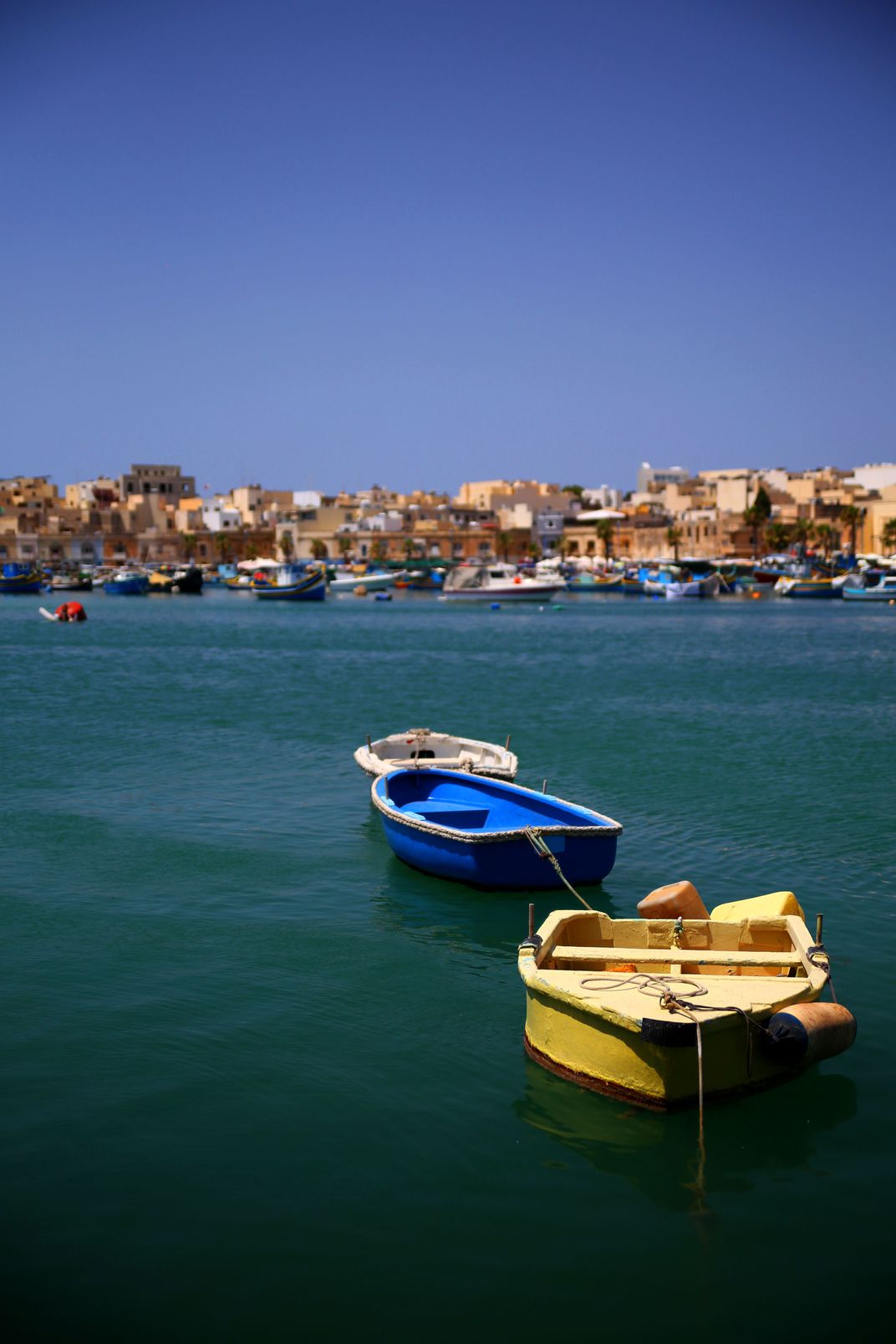 Traditional fishing boats on the island of Malta continue the tradition of Phoenician style decoration. This throwback of culture is important to the people of Marsaxlokk. The colors of the boats are typically yellow and blue with the eyes of an Egyptian god adorned on the bow.