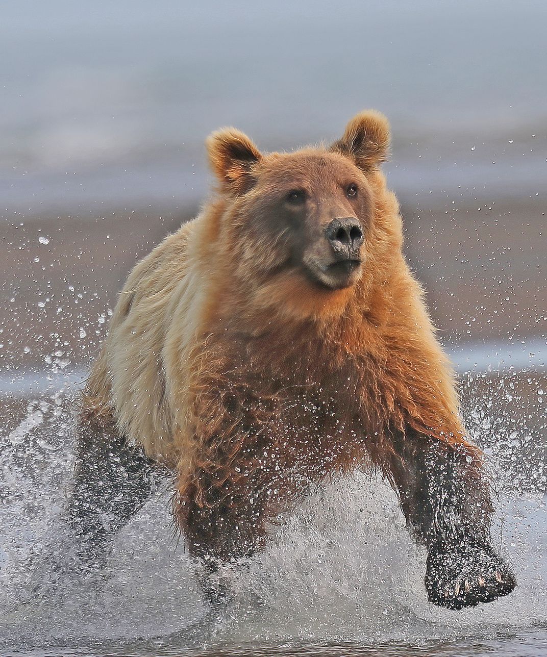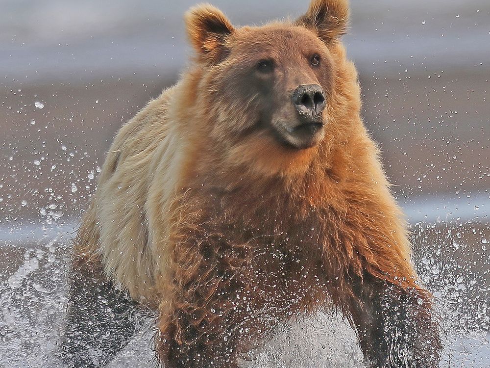 Alaskan Coastal Brown Bear fishing for Silver Salmon with a big water splash but unsuccessful this time at Lake Clark National Park,Alaska.