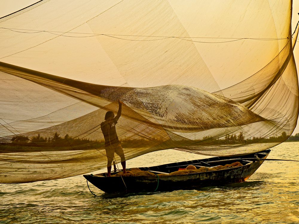 Fishing with Chinese fishing nets in Hoi An Vietnam